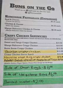 Our food truck for the afternoon will be Buns on the Go, also onsite from 1 to 4. Please note that when we have a food truck scheduled onsite, we ask that you support the food truck and no offsite food be brought onsite.